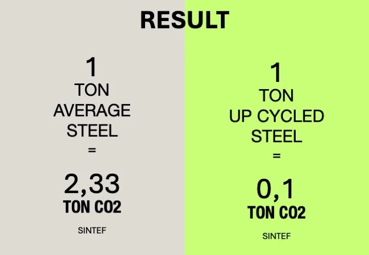 Nordic Circles has pioneered a circular method for up cycling steel from ships and oil rigs into CE-marked construction products, achieving over 90% COâ‚‚ savings. The upcycled steel has 10 times the market value of scrap steel.
